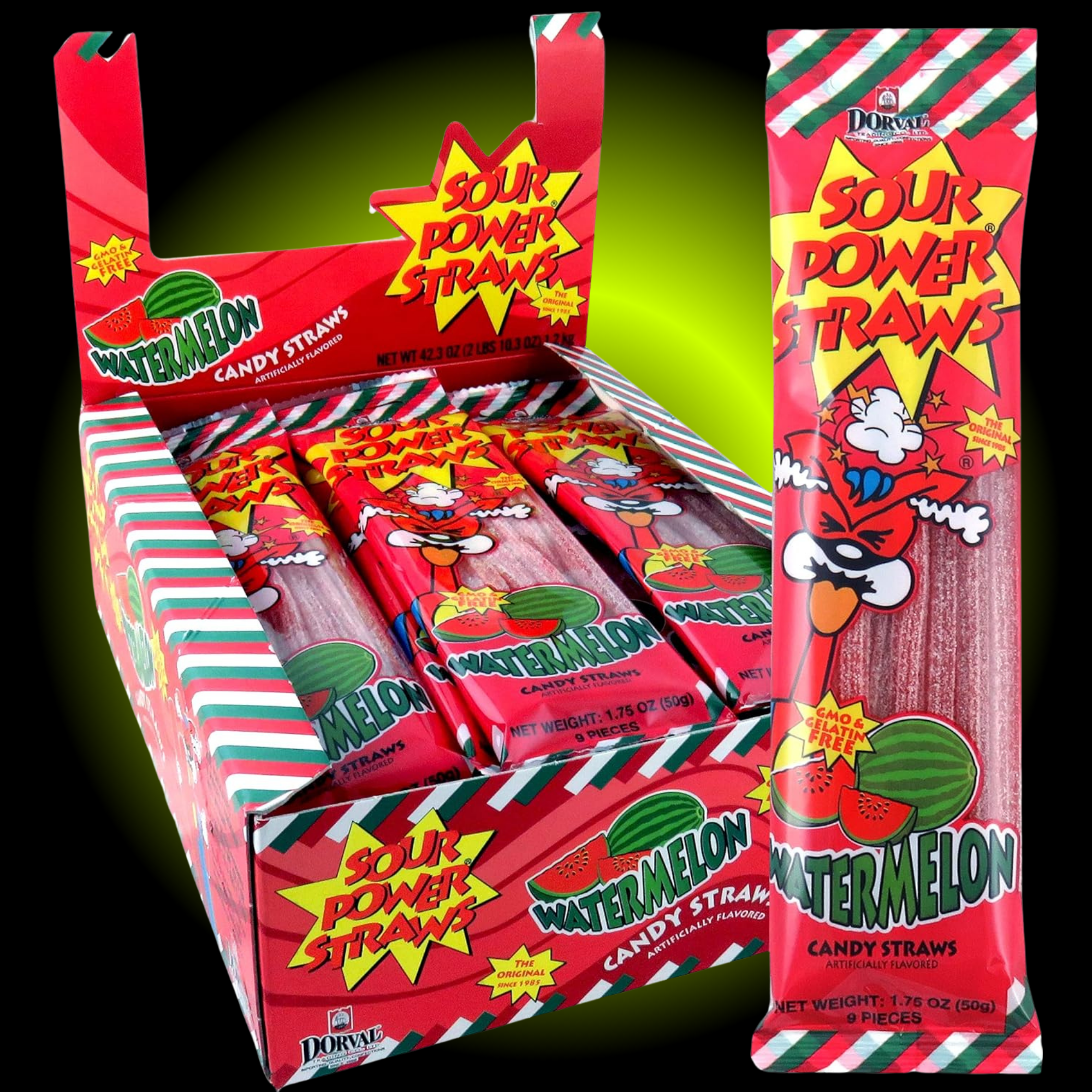 Sour Power Watermelon Gummy Straws Candy (1.75 oz)